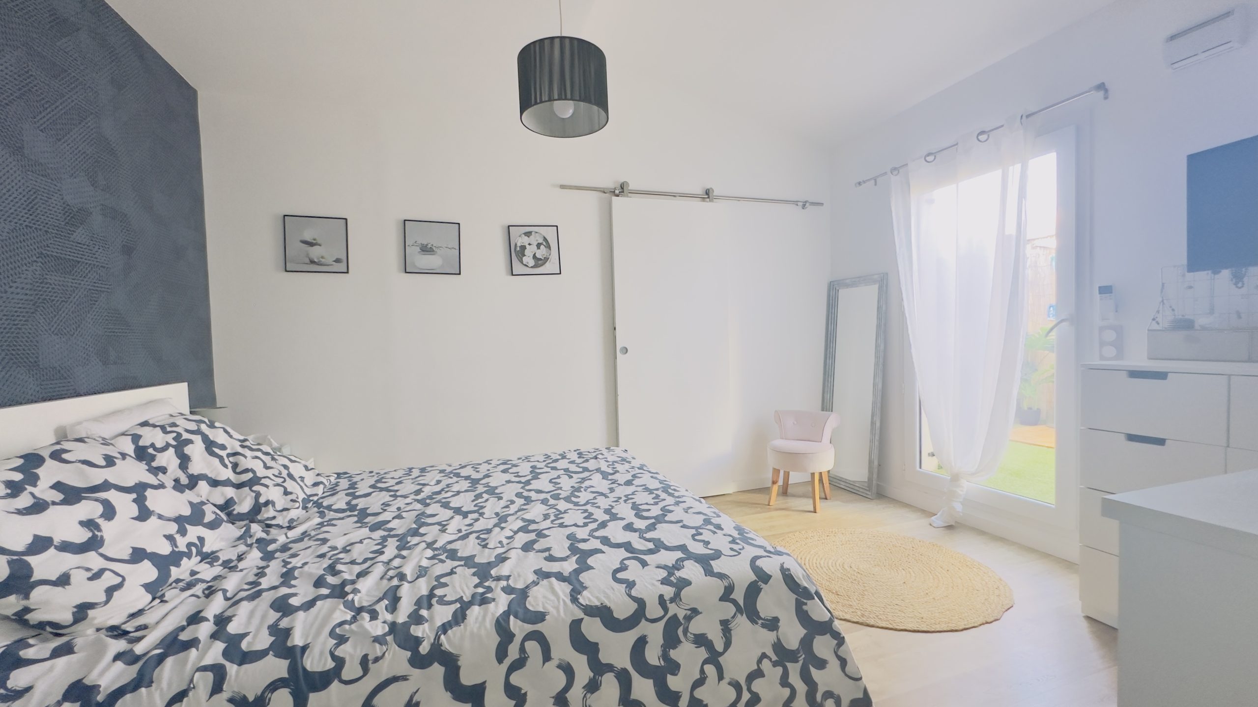 À L'étage vous trouverez deux chambres dont une suite parentale avec salle de bain / dressing et un WC, ainsi qu'une terrasse Tropézienne, privatif à la suite parentale.