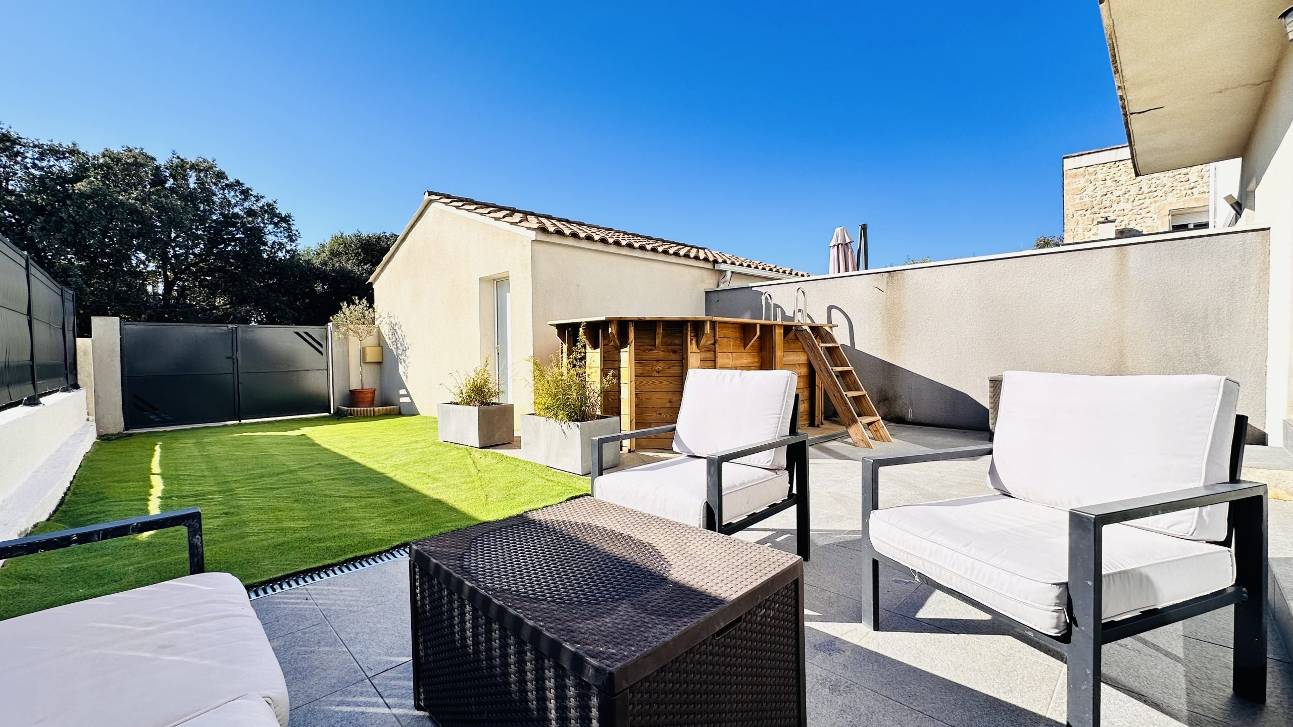 MonChoixImmobilier vous présente une charmante maison en R+1 mitoyenne d'un côté de type T4, d'une superficie de 97m carrés et bâtie sur une parcelle de 218m carrés.